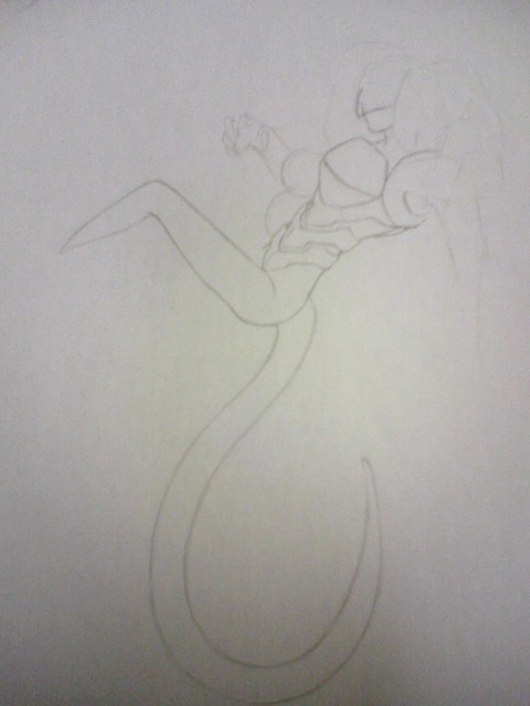 線で大雑把なあたりを描いた上から装甲を描いてます。 描き途中を見た弟は「リャナンシー?」といった。 違う、これ髪じゃなくて尻尾。 尻尾で立っているように見えるかもしれないけど違うから!