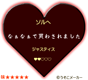 「なぁなぁで買わされました」というのと、ハートマークの赤点ッぷりが大変笑いました。 でも味は五つ星だよ、そういうところは妥協しないのかジャスティス。
