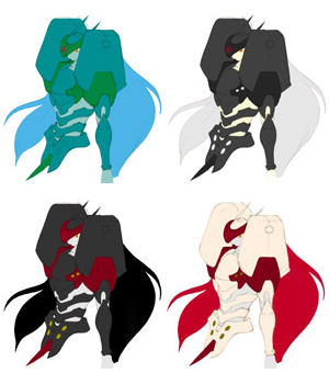 あとこれは別絵です。 いろんな色で塗ってみましたが・・・・緑色のは水中専用のロボットみたいですね・・・。 雑魚臭がします。OTL