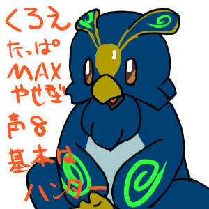嘴の下に見えるオレンジ色が本人の目です、というか顔。 デフォルトキャスト男の黒メインに乾き始めた血みたいな暗い赤がサブカラーのいかにもロボ!って感じの子です。 でも声すげぇおっさん。 やっていてもたまに「消えろ・・・」ってボソッと聞こえる感じで無口ー。 ただでさえ身長マックスなのに角があるから更に高くて、そんなたっぱでこんなファンシーな着ぐるみ着てます。 後半のイベント殆どこの格好で、クリアもこれだから、あの時すごく浮いてた。 あの時の写真みたいなの、後でも閲覧可能だったら面白かったのになぁ。